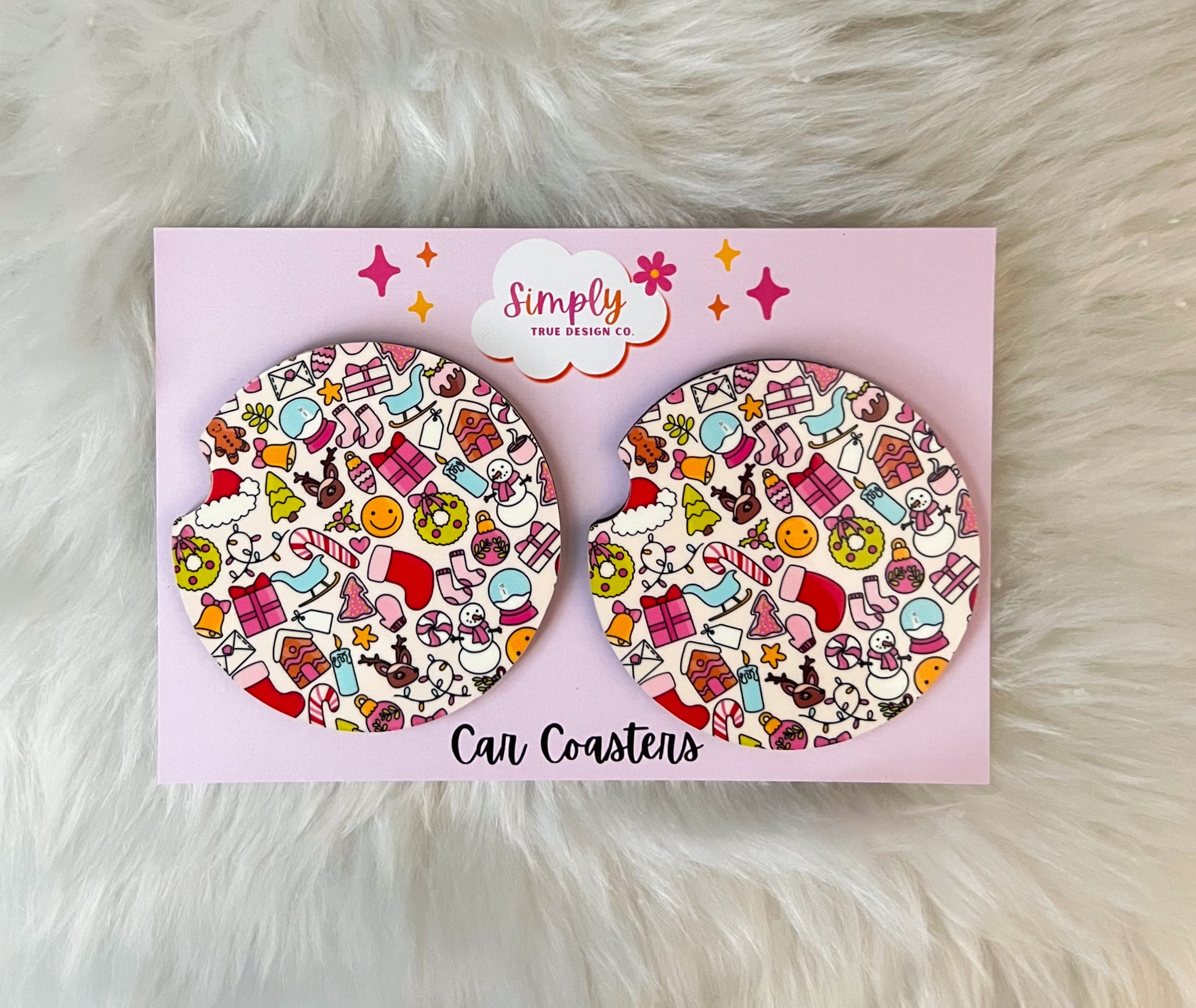 Set of 2! Each coasters are handmade! Use these coasters as a car decor making it a fun way to keep those cup holders clean and cute.